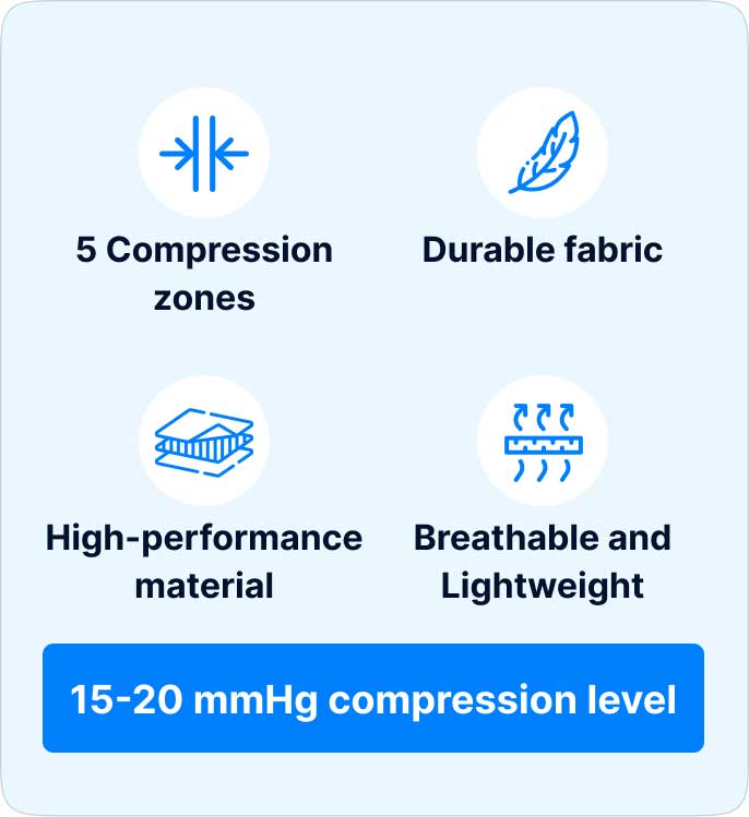 SoothRelieve™ were designed using compression zone technology providing 15-20 mmHg compression level.